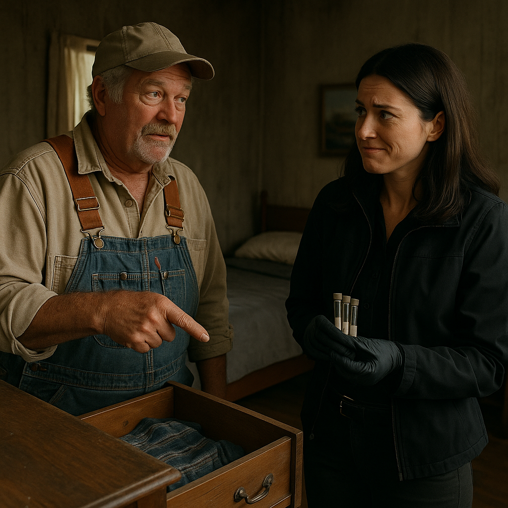 The same residue was found inside the farmer’s house… smeared along the kitchen walls, dusted across his bedroom floor, even inside his dresser drawers.