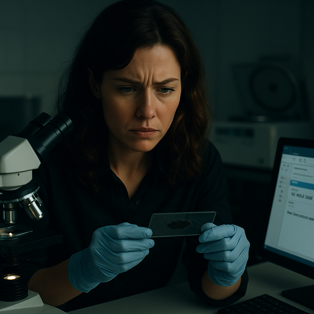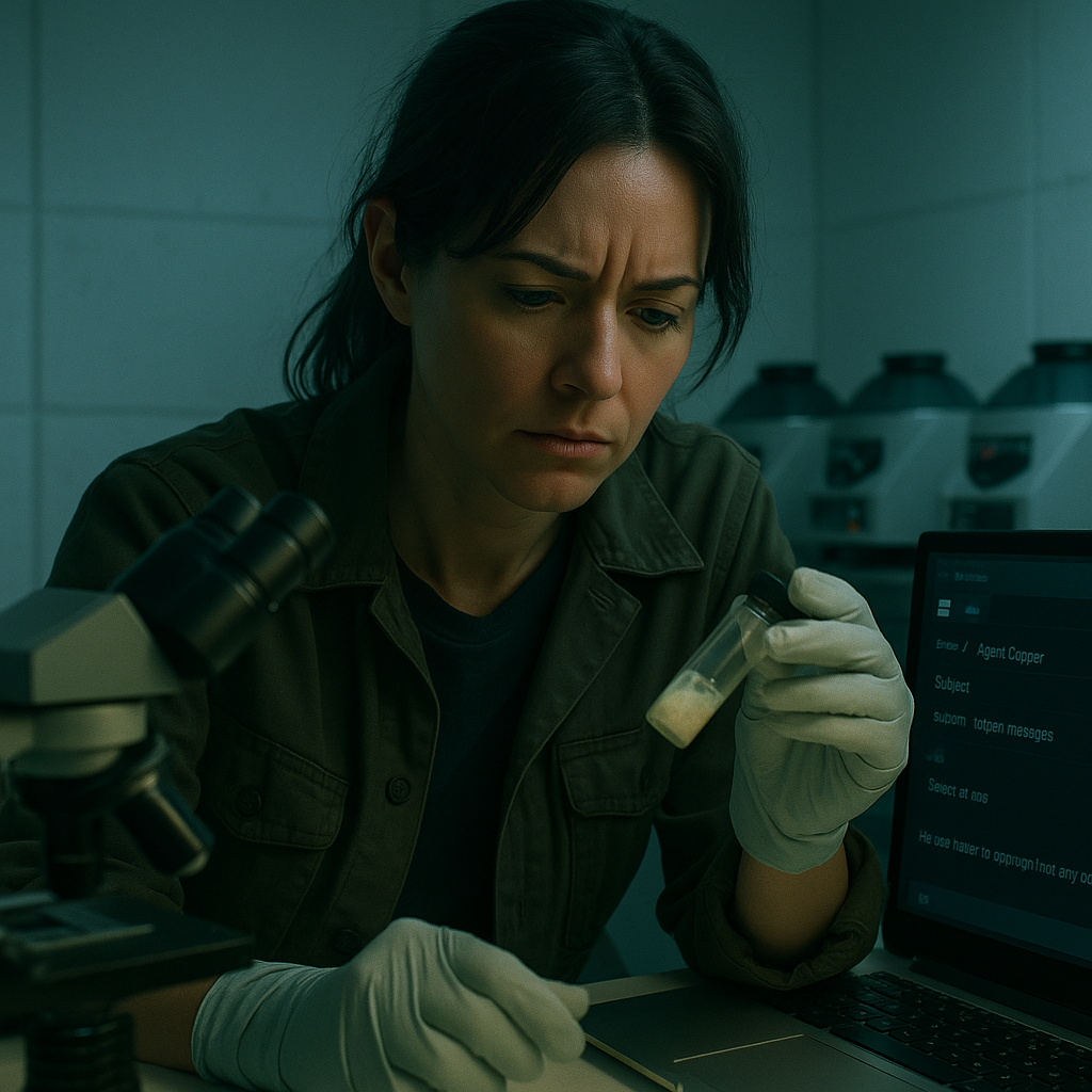 My eyes flick between the email and the shifting particles under the lens. The air in the room feels heavier.
